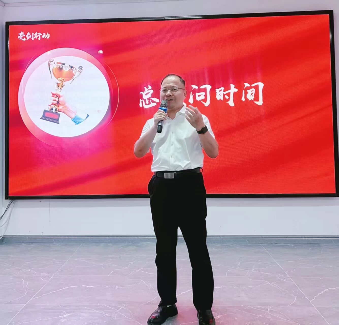 大会最后,王总发表重要讲话。他首先代表公司向所有参与“亮剑行动”并付出辛勤努力的员工表示衷心感谢,对获得奖项的各战队和个人表示祝贺,并高度肯定了行动取得的显著成果。王总深刻阐释了“亮剑精神”在乐邦的核心内涵——“狭路相逢勇者胜,面对困难善于协同作战”。他强调,本次表彰不仅是对过去成绩的嘉奖,更是对未来征程的动员,号召全体乐邦人以榜样为镜,持续精进,在下阶段活动中再立新功。