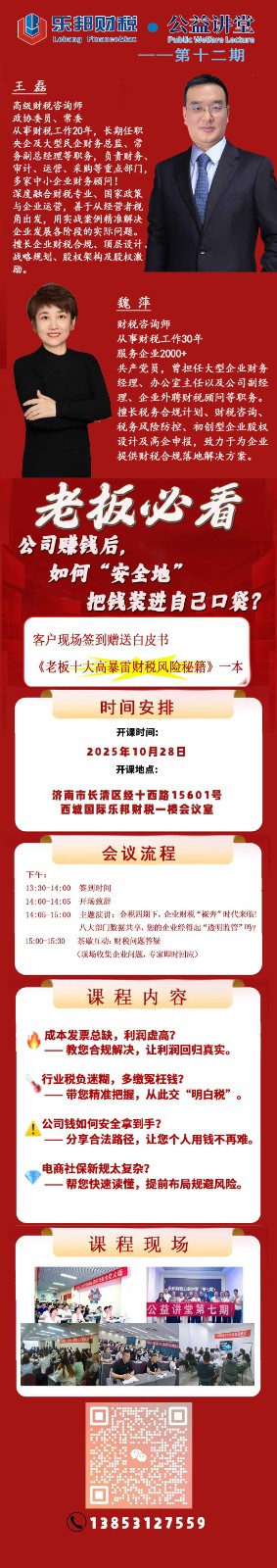 2025 第 11 期财税公益大讲堂正在进行中[耶]财税合规、税务风险、新公司法、注册资本实缴!干货多多,第 12 期将于 10 月 28 日举办!欢迎各位老板参加交流,合规从现在做起。